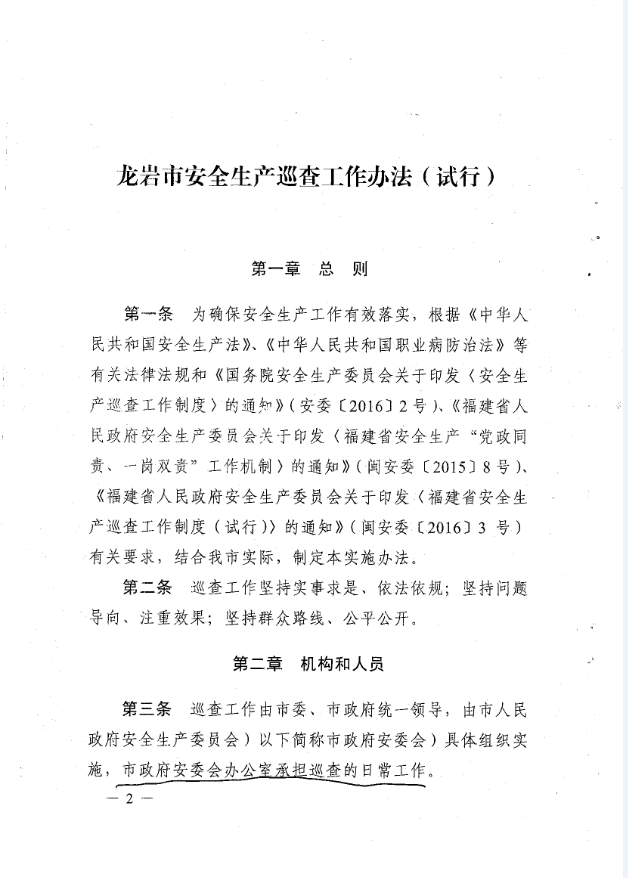 龍巖市安全生產(chǎn)責(zé)任清單及安全生產(chǎn)巡查工作辦法(巖委【2017】45)