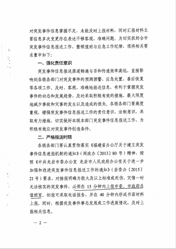 市政府辦關(guān)于切實(shí)抓好突發(fā)事件信息報(bào)送工作的通知(龍政辦【2017】100號)