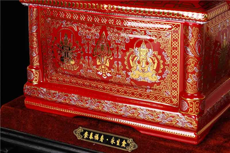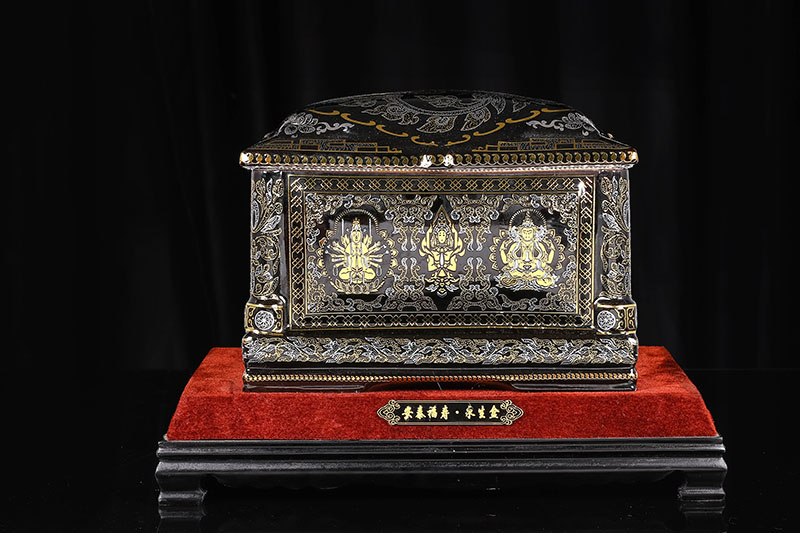 這款【佛光普照】產(chǎn)品,采用的是“錯金銀”工藝,它是中國非物質(zhì)文化遺產(chǎn)名錄的一項美麗的藝術(shù),源自于“春秋戰國時(shí)期”至今已經(jīng)2000多年,把這種精湛工藝運用到我們永生盒,既是傳承,亦是發(fā)揚!產(chǎn)品上的圖案源自藏傳佛教的“唐卡”寓意永登西方世界,是生命的輪回不止,代表著(zhù)中國傳統佛教的美好寓意。尺寸:300x230x210mm