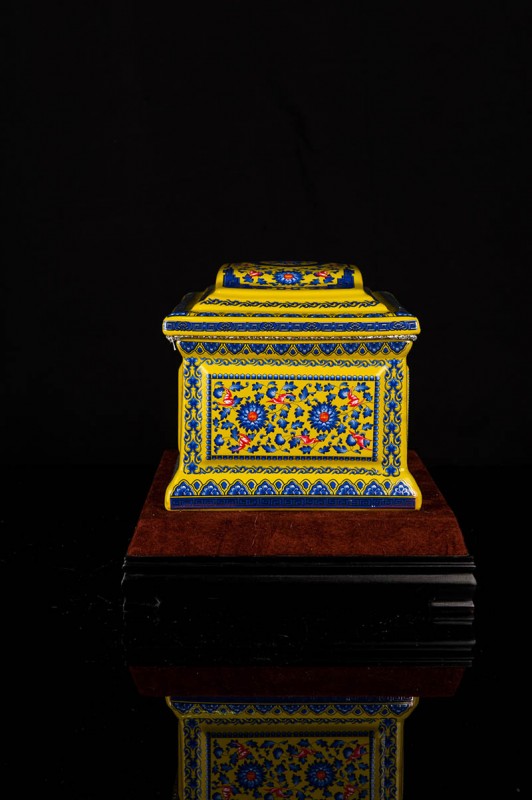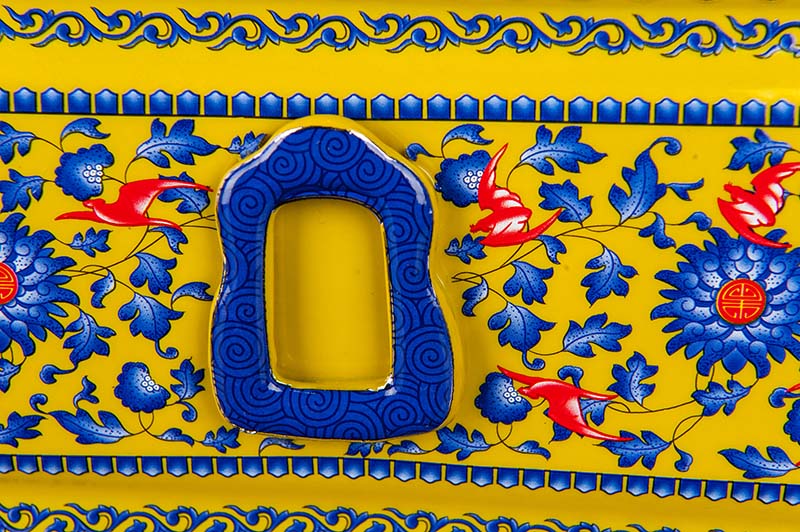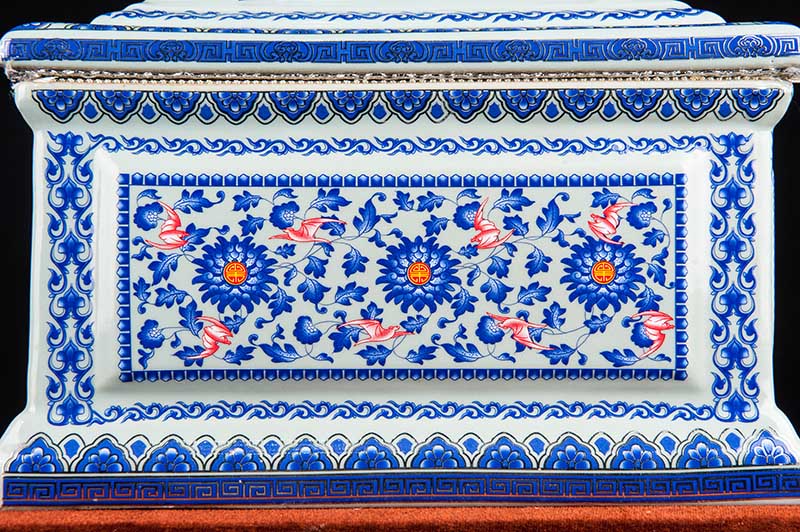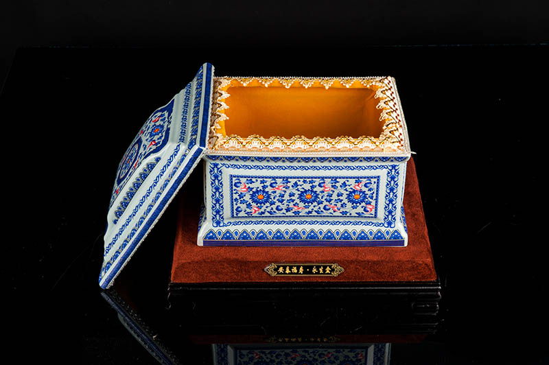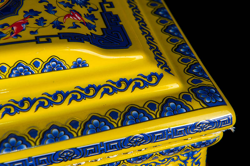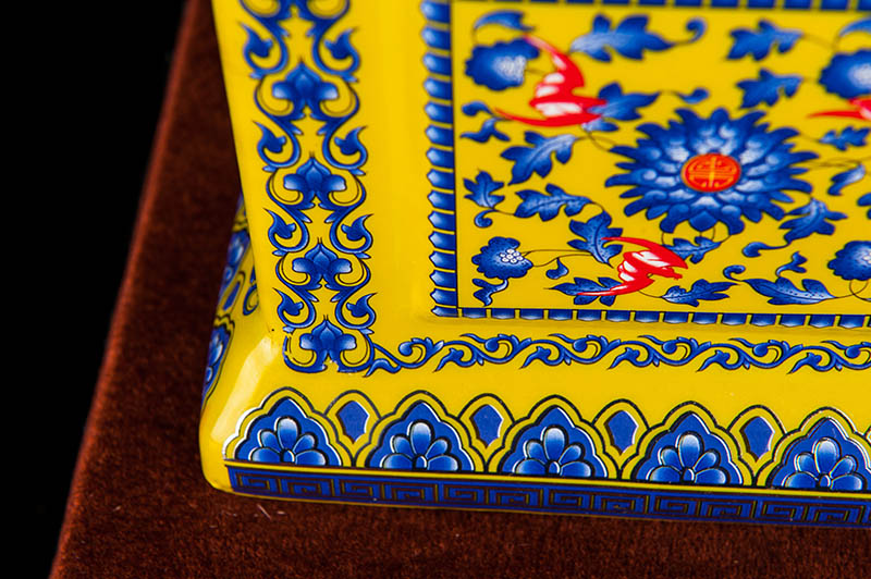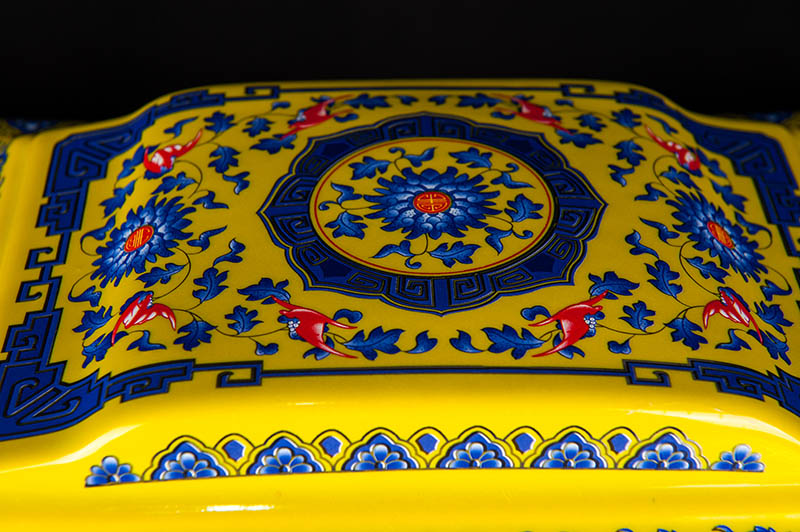 這款【福在眼前】產(chǎn)品沿用我們瓷都“景德鎮”具特色的青花,還有古代皇帝才能用的黃色作為底色,“纏枝蓮”、“蝙蝠”、“永生花”作為點(diǎn)綴,整體給人感覺(jué)特別典雅以及文藝。產(chǎn)品上繪上“蝙蝠”(寓意福到)盒“永生花”(寓意生命的永恒、眼睛的形狀)顧名思義“福在眼前”。尺寸:300x230x210mm