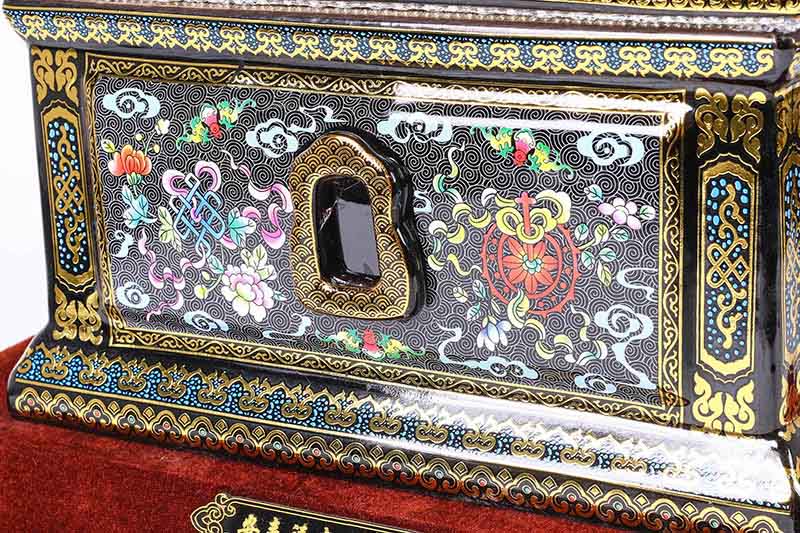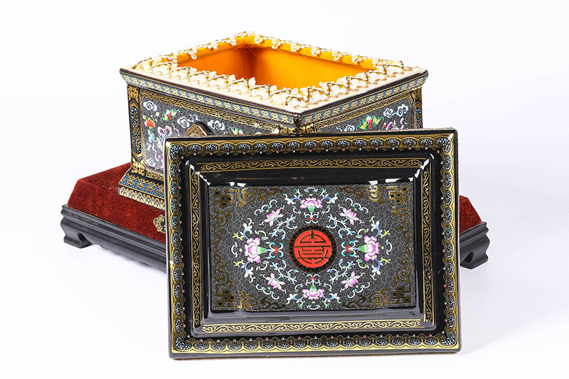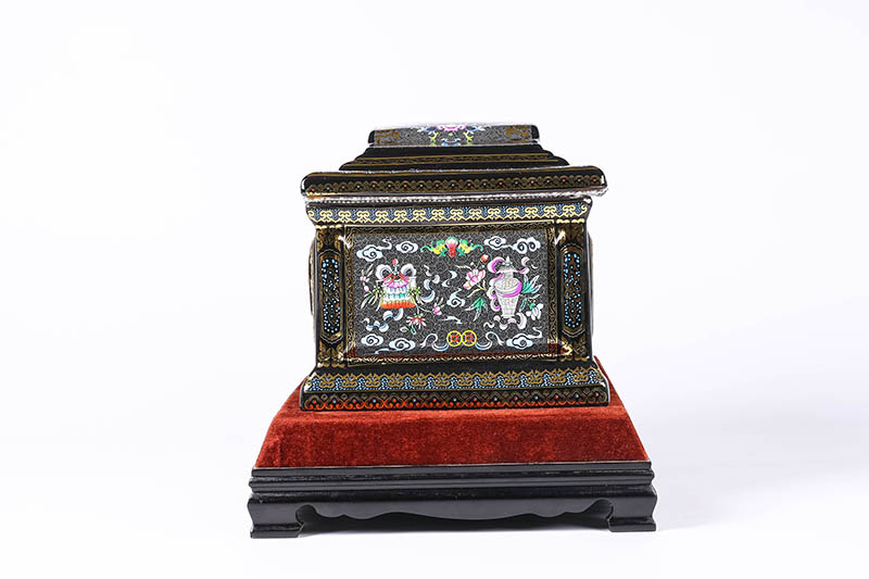 這款【故宮八寶】產(chǎn)品,采用的工藝非常繁瑣,巧妙的運用爬花鋪底,然后加上粉彩,四面采用的八寶圖、即吉祥結、妙蓮、寶傘、右旋海螺、金輪、勝利幢、寶瓶和金魚(yú)。在這款產(chǎn)品上展現的盡致,代表著(zhù)我們“安泰福壽”人對陶瓷藝術(shù)的無(wú)限美好的追求,八寶圖寓意后世吉祥平安,是中國的傳統文化!尺寸:300x230x210mm