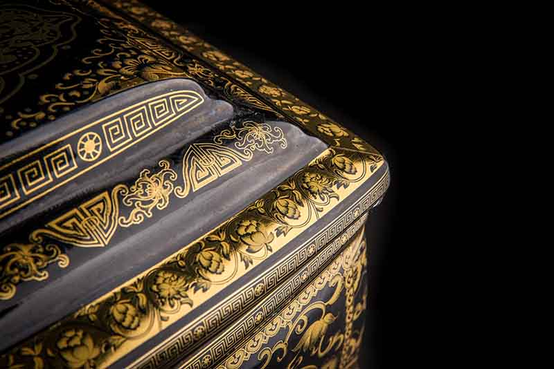 這款【黑釉福滿(mǎn)堂】產(chǎn)品,我們可以看到整體器型大氣磅礴,圖案典雅精致,1300度高溫煅燒,巧妙運用黑色作為底色,搭配描金,大氣而不失精致,莊重而不失典雅。福滿(mǎn)堂象征著(zhù)‘福星高照’,有著(zhù)招財的作用,能夠興旺家里的財運,事業(yè)順利、節節高升!尺寸:345x250x250mm