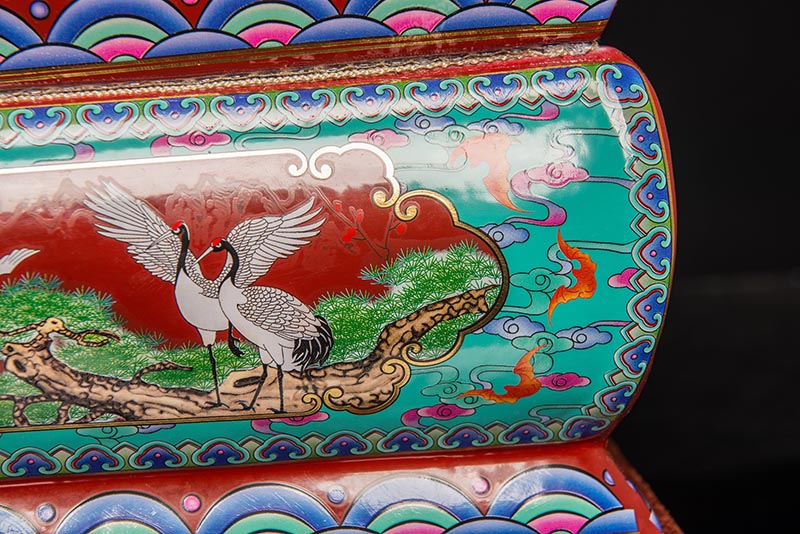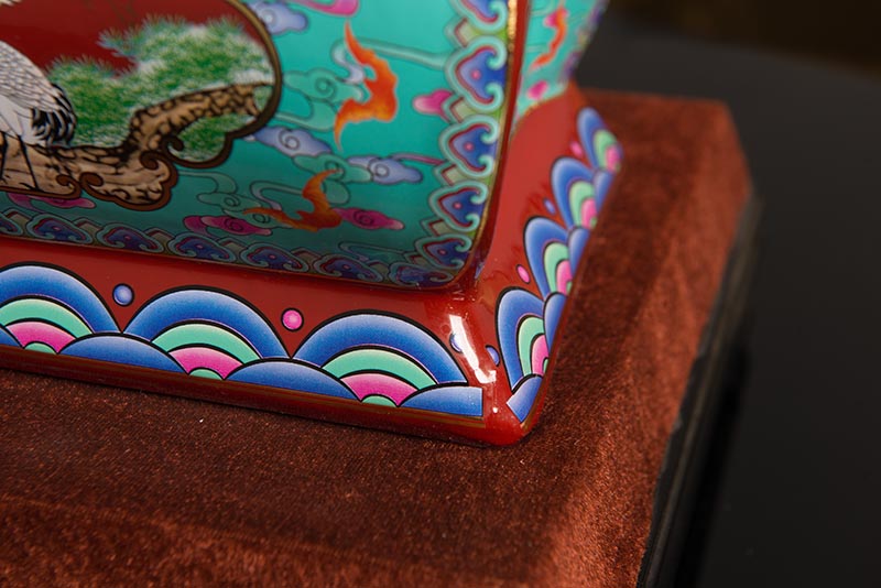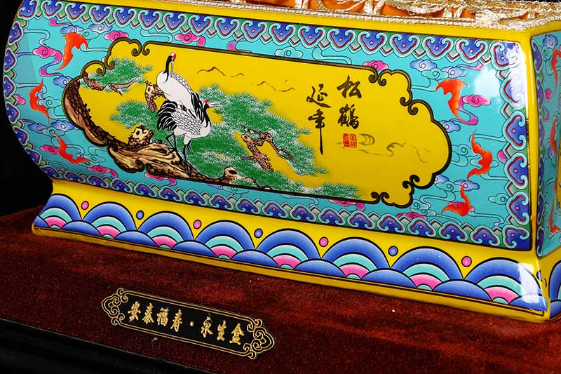 這一款產(chǎn)品采用的是景德鎮獨特工藝粉彩工藝,色彩鮮明,呈色自然。原料用的是 “高嶺土”一種特別土礦資源,“高嶺土”又有高齡之意,與我們產(chǎn)品【仙鶴年年】相得益彰,本款產(chǎn)品運用了仙鶴、松樹(shù)、松鶴延年則寓延年益壽或為志節清高之意。  尺寸:345x200x240mm